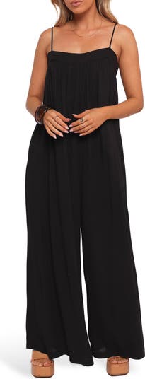 Get to the fun faster in a one-and-done jumpsuit cut from a linen-kissed blend and fixed with fully flowing legs.