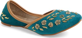 Handmade by artisans in Pakistan, this stunning flat features intricate beading and embroidery along with a generously cushioned footbed.