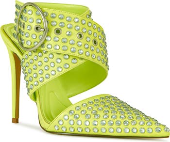 Sparkling crystals play up the contemporary attitude of this lofty pointy-toe pump.