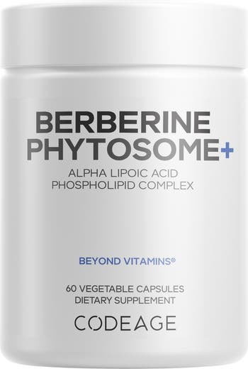 Codeage Berberine Phytosome+ supplement features Berberine HCL derived from Indian Barberry extract and Alpha Lipoic Acid. This formula also includes a phospholipid complex. Each bottle provides a 2-month supply.