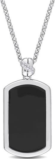 This bold and beautiful hexagon enamel necklace is crafted in luminous sterling silver. This stunning necklace features ten round-cut, prong-set diamonds crowning a metallic rounded hexagon pendant coated with enamel. Enhanced with a polished finish, the pendant is suspended on a 22-inch diamond-cut rolo chain secured with a lobster clasp. A modern accessory.