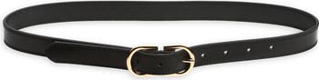A shiny buckle commands the center of this slender leather belt that's great for adding the final touch to ensembles.