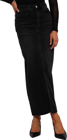 Make a casual yet sophisticated statement in this light-wash nonstretch-denim skirt featuring a perfectly faded and whiskered finish.