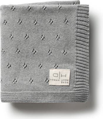 Stretchy ribbing frames the floral pointelle pattern on this lightweight baby blanket knit from exceptionally soft cotton yarns.