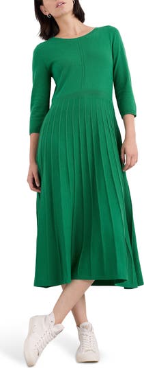 Pointelle detailing draws the eye towards the bodice of this pretty midi dress made of a wool-kissed knit that's soft and warm.