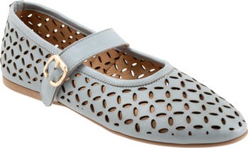 Floral perforations enhance the breathability of this leather mary jane flat grounded by a cushioned and supportive footbed.