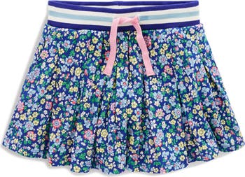 This fun and functional skort of floral cotton jersey features flippy pleats and a stretchy drawstring waist to finish the sporty look.