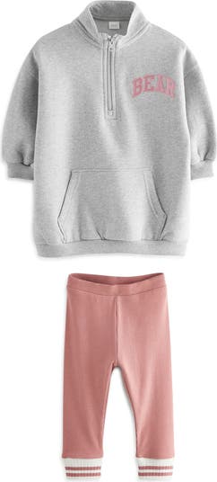 Sporty and cozy merge in this kid-size set that pairs a half-zip sweatshirt with coordinating leggings finished with striped ribbed cuffs.