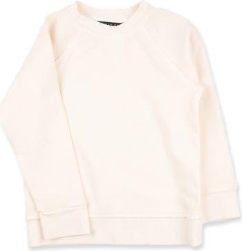 This cozy sweatshirt of soft French terry features frayed seams for an edgy look just like the big kids wear.