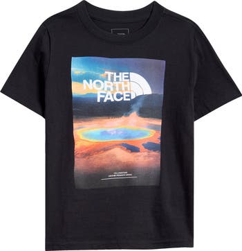 A vibrant landscape graphic brings Earth's majesty to a kid-sized T-shirt cut from comfortable cotton.