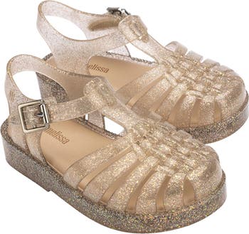 Retro inspired glitter jelly creates a fisherman sandal that features a signature Tutti Frutti scent.