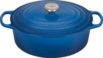 This oval Dutch oven crafted from enameled cast iron for superior heat distribution and retention is a must-have for home cooks and professional chefs. Its everyday versatility makes it ideal for everything from slow-cooking and braising to roasting, baking and frying, and the durable, easy-clean enamel resists dulling, staining, chipping and cracking.