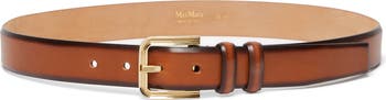 Dark, hazy edges frame a smooth belt fashioned from softly grained Italian leather in a smoky, tobacco-inspired hue.