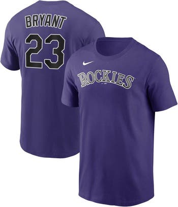 Before Kris Bryant steps on the field for the next Colorado Rockies game, gear up in this Name and Number T-shirt from Nike. Its lightweight cotton fabric is breathable and comfortable, perfect for the midsummer heat of baseball season. The back features printed graphics that highlight your admiration for Kris Bryant.
