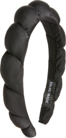 Handmade from lustrous satin, this padded headband in a playful scalloped design makes a fun finishing touch for your hairdo.