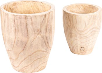 Round Paulownia Wood Planters, Natural, Set of 2