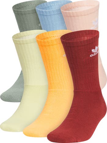 The brand's iconic Trefoil logo adds a heritage signature to this assorted pack of everyday crew socks made from moisture-wicking yarns.