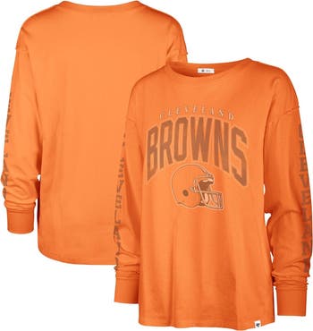 Celebrate your unwavering Cleveland Browns fandom with the '47 Orange Cleveland Browns Tom Cat Lightweight Long Sleeve T-Shirt. This oversized top features distressed screen print graphics that proudly display your Browns pride. The woven clip tag and flatlock stitching add a touch of authenticity, while the cotton construction ensures comfort and breathability. Whether you're cheering from the stands or simply showing your support, this T-shirt is the perfect way to represent the Cleveland Browns.