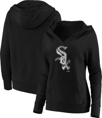 Mix team spirit and style with this Chicago White Sox Core Team Crossover V-neck pullover hoodie. This Fanatics Branded hoodie features an eye-catching V-neck design and distressed graphics. Stay warm in Chicago White Sox style with this fashionable hoodie.