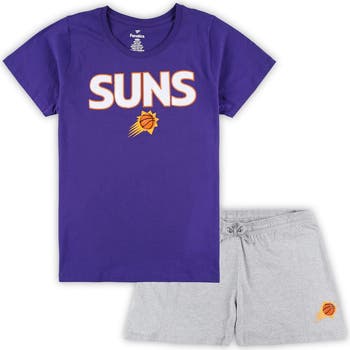 The Women's Fanatics Branded Purple/Heather Gray Phoenix Suns Plus Size T-Shirt and Shorts Combo Set is the perfect way to show your support for the Phoenix Suns. This set includes a T-shirt and a pair of shorts, both featuring screen-printed graphics that proudly display your Phoenix Suns pride. The T-shirt has a crew neck, and the shorts have an elastic waistband with a drawstring for a comfortable fit. Whether you're cheering on the Phoenix Suns at the game or relaxing at home, this set is sure to keep you comfortable and stylish.