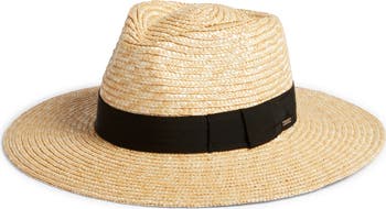 This woven straw hat features a wide brim that provides ample shade and Western attitude as you stroll the boardwalk or through the market. A grosgrain band gives it a classic finishing touch that works with any look.