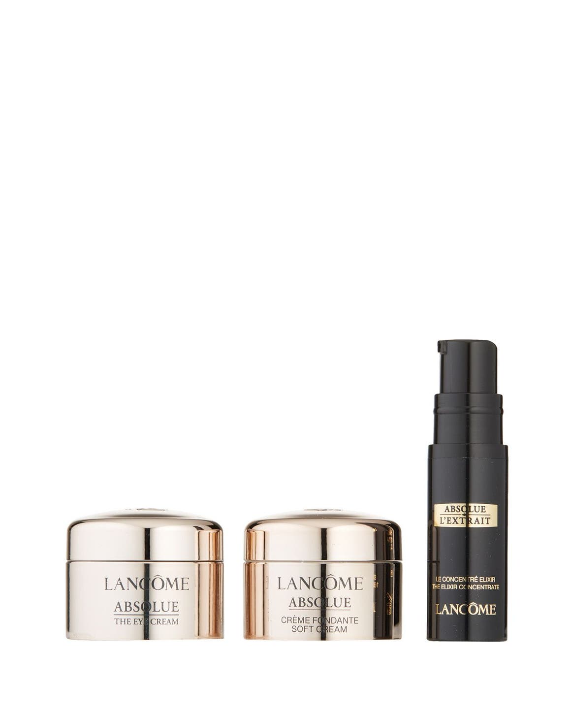 Receive deluxe samples of Absolue The Elixir Concentrate, Absolue Soft Cream and Absolue The Eye Cream (0.16 oz. each) with your $175 Lancôme purchase. Online only.