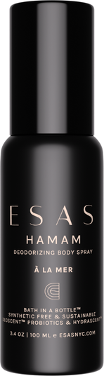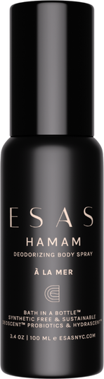 - HOW IT WORKS : Inspired by the ancient Hamam ritual, Esas Hamam Deodorizing Body Spray is your "bath in a bottle," designed to purify, cleanse, and refresh. Rooted in a tradition that dates back to the 14th century, this unique body spray brings the essence of Roman baths into the modern day. Scientifically formulated with the purest ingredients, including Certified Organic Botanical Alcohol*, Witch Hazel, Coconut-Derived Glycerin*, and Esas DeoScent™ Sugarcane Ferment*, it effectively cleanses, deodorizes, and refreshes your skin wherever you go. Enriched with hydrating hyaluronic acid, vitamin E, and antioxidant-rich grape leaf tincture, this spray not only purifies but also nourishes, leaving your skin feeling revitalized and lightly scented. Perfect for an on-the-go refresh, it's the ultimate solution for staying clean, refreshed, and fragrant throughout your day.