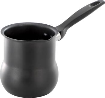 The Better Chef 0.6 Quart Aluminum Nonstick Turkish Coffee Warmer in Black is the perfect addition to your kitchen for brewing rich, aromatic Turkish coffee with ease. Made from durable, heavy gauge aluminum, this coffee warmer heats quickly and evenly, ensuring your coffee is prepared to perfection every time. The sleek black finish gives it a modern, stylish look, while the round shape allows for a traditional, authentic brewing experience. Its nonstick surface ensures that your coffee doesn't burn or stick, making cleanup a breeze and preserving the delicate flavors of your brew. Designed with safety and comfort in mind, the Better Chef coffee warmer features a cool-touch handle, allowing you to handle the pot without the risk of burns or discomfort. Whether you're a seasoned enthusiast or a beginner, the Better Chef 0.6 Quart Turkish Coffee Warmer makes it simple to enjoy a traditional, flavorful coffee experience with minimal effort. Item Dimensions: 8.60" x 3.75" x 4.00" Item Weight: 0.40lbs