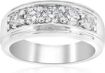 1 1/2Ct Men's Diamond Wedding Anniversary Ring in 10k Gold Lab Grown Five Stone