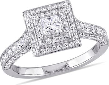 1-1/4 CTW Diamond Square Halo Engagement Ring 14k