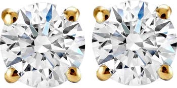 Two round brilliant cut genuine lab grown diamonds are set in solid 14k gold settings with butterfly push backs.