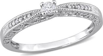 Celebrate your promise with the delicate artistry and timeless elegance of this vintage-inspired ring. Crafted in luminous sterling silver, the exquisite detailing around the diamonds evokes a charming, antique romance. This piece features a refined, sophisticated sparkle that feels both classic and meaningful. It is a beautiful, cherished symbol of enduring love, designed to be treasured for years to come.