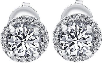 1/2 Ct Halo Diamond Studs With Screw Backs Gold Lab Grown