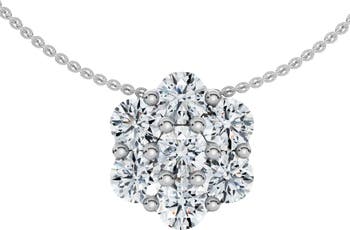 This classic and stunning women's necklace features seven round brilliant cut lab grown diamonds. All diamonds are prong set in solid 14k gold polished cast mounting. An 18" 14k gold spring ring chain is included.
