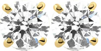 Stunning and high quality women's earrings features round brilliant cut genuine lab grown diamonds. The diamonds are prong set in solid 14k gold with screw backs.