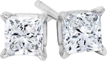 1 - 4 Ct TW Princess Cut Diamond Studs in 14k Gold Earrings Lab Grown