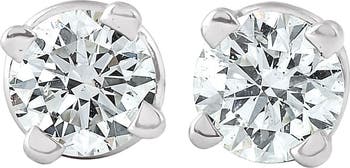 This pair of round brilliant cut diamonds are prong set in a 14k white gold setting. Both earrings include push backs for comfortable wear.