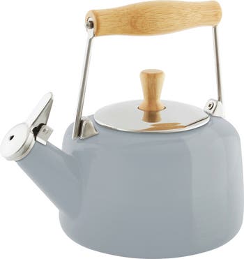 - The light color beautifully accents the enamel finish of the teakettle's body