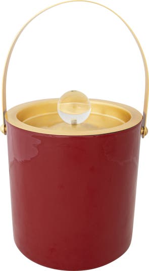 1.5-Quart Enameled Stainless Steel Ice Bucket with Glass Knob Handle, Red and Gold Finish