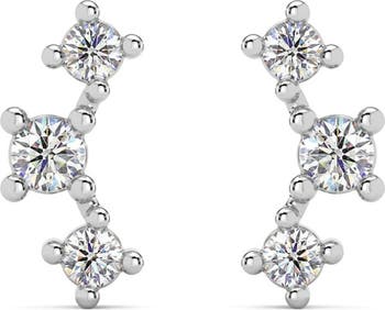 1/5Ct TW 3-Stone Diamond Crawler Earrings 14k Gold Studs Lab Grown 1/3" Tall