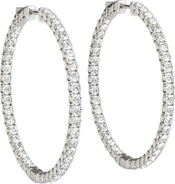 1.75 ct Lab Grown Diamond Hoops Inside Outside 1 1/3" 14K Gold Vault Lock