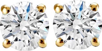 Two round brilliant cut genuine lab grown diamonds are set in solid 14k gold settings with butterfly push backs.
