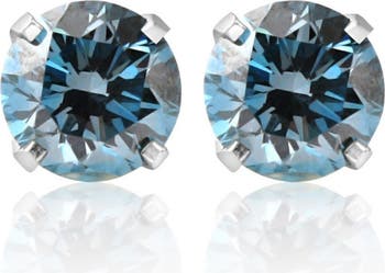 This classic pair of round studs features 2 matching round brilliant cut blue lab grown diamonds. All diamonds are prong set in 14k white gold puss on and off findings.