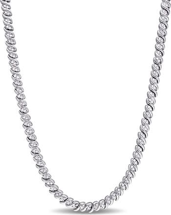 This classic braided necklace is crafted in sterling silver. It features 200 round prong-set diamonds across its length. It manages to portray simplicity, exclusivity and style.