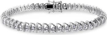 This stunning diamond tennis bracelet is crafted in sterling silver and is perfect for all occasions. Add a touch of elegance and class to any ensemble with this spiral-inspired 103-diamond tennis bracelet.