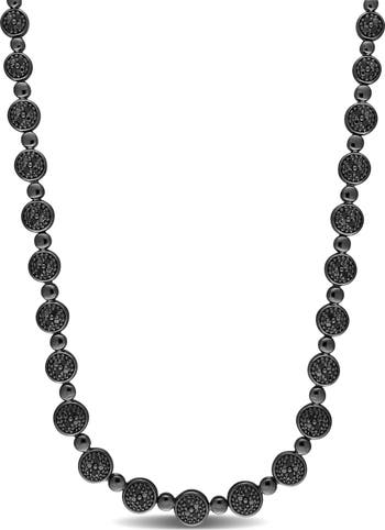 This charming diamond tennis necklace will add that final touch to your outfit. This elegant necklace is crafted in luminous sterling silver and features 100 round-cut, pave-set diamonds in a tennis pattern to give a flawless look. Polished to a brilliant shine, this necklace measures 17-inches in length. This gorgeous accessory will compliment any neckline.