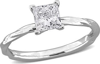 Bring feminine glamour to your everyday look with this beautiful solitaire engagement ring. Featuring a princess-cut lab-grown diamond at the center on a beautiful twist style band crafted in 18k white gold. This attractive ring is enhanced with a high polish finish.