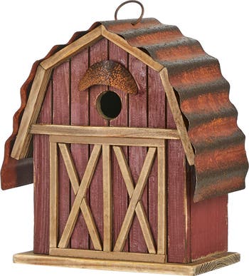 Enhance your space with this farmhouse barn-style decorative birdhouse. It is crafted of durable solid wood with handcrafted washed retro red finish and distressed details, adorned with lifelike textured roof and 3D door that brings a touch of rustic charm and aesthetics. It will create a intriguing and inviting atmosphere to highlight your garden, patio, backyard or any other outdoor space!