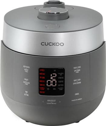 Make Cooking a Breeze with CUCKOO's CRP-ST1009F 10-Cup Twin Pressure Rice Cooker! Consistently delicious rice, optimally reheated leftovers, ready-made meals with the press of a button, and professional grade quality - with CUCKOO's CRP-ST1009F 10-Cup Twin Pressure Rice Cooker, all of this and more will be at your disposal. Key Features: Multi-Functional Cooking: This multi-functional cooker has 16 fully customizable menu options that allow a wide variety of meals, a reheat option for leftovers, and a keep-warm function to ensure none of your food is ever overcooked or burnt while serving. Smart Automated Technology: Transform this cooker into an effective food steamer with high or non-pressure steaming functions, or experiment with automated features such as the Preset Timer, which lets you place ingredients in the inner pot in the morning and come home to freshly made rice - no effort and no stress! 3 Language Voice Guide: Includes a voice navigation guide in English, Chinese, and Korean, this rice cooker will act as your personal kitchen assistant! High-Quality Construction: Featuring a durable, stainless steel inner pot with nonstick coating and induction technology, both ensure efficiency, optimal temperature, and heat distribution throughout the cooking process. Hassle-Free Cleaning: When cooking is completed, initiate the Auto-Clean function to automatically steam the interior of the rice cooker for a deep, quick clean. Elevate your culinary experience with CUCKOO's CRP-ST1009F 10-Cup Twin Pressure Rice Cooker, where innovation meets gourmet excellence!