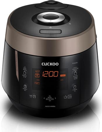 Enjoy Gourmet Creations with CUCKOO's CRP-P1009SB 10-Cup Heating Pressure Rice Cooker! Consistently delicious rice, optimally reheated leftovers, ready-made meals with the press of a button, and professional grade quality - with CUCKOO's CRP-P1009SB 10-Cup Heating Pressure Rice Cooker, all of this and more will be at your disposal. Key Features: Multi-Functional Cooking: This multi-functional cooker has 13 fully customizable menu options that allow a wide variety of meals, a reheat option for leftovers, and a keep-warm function to ensure none of your food is ever overcooked or burnt while serving. Smart Automated Technology: With Fuzzy Logic Technology, experiment with automated features such as the Preset Timer, which lets you place ingredients in the inner pot in the morning and come home to freshly made rice - no effort and no stress! 3 Language Voice Guide: Includes a voice navigation guide in English, Chinese, and Korean, this rice cooker will act as your personal kitchen assistant! High-Quality Construction: Featuring a durable, inner pot with nonstick coating, both ensure efficiency, optimal temperature, and heat distribution throughout the cooking process. Hassle-Free Cleaning: When cooking is completed, initiate the Auto-Clean function to automatically steam the interior of the rice cooker for a deep, quick clean. Elevate your culinary experience with CUCKOO's CRP-P1009SB 10-Cup Heating Pressure Rice Cooker, where innovation meets gourmet excellence!